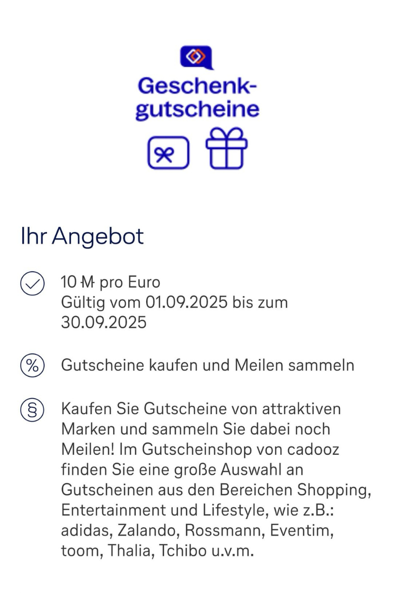 - Cadooz / BestChoice – ideal für Miles & More, mit bis zu 10 Meilen pro Euro